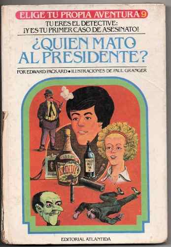 LITERATURA Y LINGUISTICA:LITERATURA:LITERATURA POR CONTINENTES, REGIONES Y PAÍSES:LITERATURA DE AMERICA:LITERATURA DE ESTADOS UNIDOSPalabras clave: Literatura estadounidense, Novela de misterio Clasificación: 82-32 Novelas cortas Resumen: El millonario Harlowe Thrombey te contrató para que averiguaras quién quería eliminarlo. Pero antes de que tuvieras siquiera tiempo de empezar tu tarea, alguien vertió arsénico en su botella de coñac. ¡Ahora tienes un caso de asesinato en las manos! La lista de sospechosos incluye a su esposa Jane, su sobrino Chartwell y su sobrina Ángela, todos los cuales son herederos de su cuantiosa fortuna. ¿Quién mató al presidente? [texto impreso] / Edward Packard, Autor ; Paul Granger, Ilustrador . - 5a. ed. . - Buenos Aires [Argentina] : Atlántida, 1981 . - 122 p. : il.. - (Elige tu propia aventura; 9) .