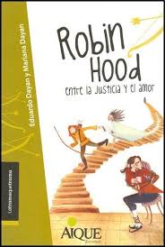 Por otro lado, se halla la línea argumental de corte amoroso. Con el correr de los capítulos, se va develando poco a poco el amor de dos personajes: el valeroso pero tímido Robin Hood y Lady Mariana, un poco caprichosa por momentos, pero que intrépida y dispuesta a todo, ama al joven héroe.Nota de contenido: Los tiempo de Ricardo Corazón de León - Un tal Robn Hood - Robien Hood entre la justicia y el amor - Ates de leer la novela - Actividades de los capítulos 1 a 4 - Actividades de los capítulos 5 a 9 - Actividades de los capítulos 10 a 14 Robin Hood : entre la justicia y el amor [texto impreso] / Eduardo Dayan, Autor ; Mariana Dayan, Autor ; Viviana Brass, Ilustrador . - 1a. ed . - Aique, 2013 . - 109 p. : il. - (Latramaquetrama. Verde) .