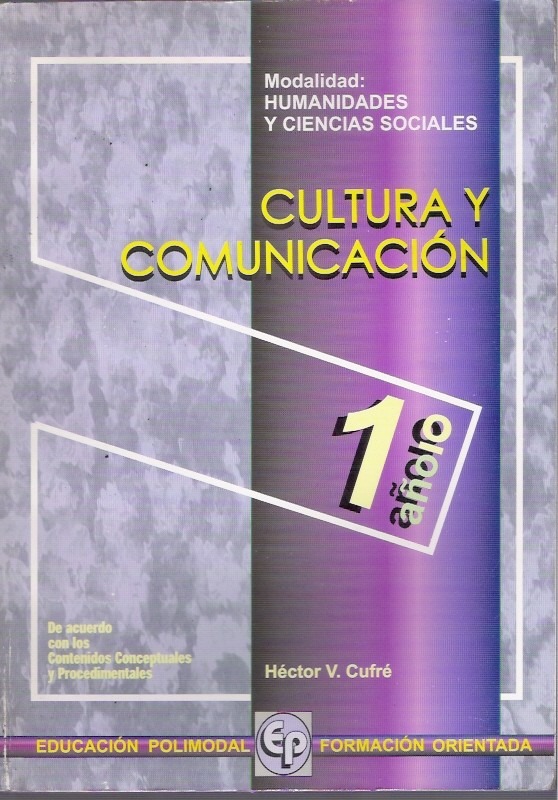 SOCIEDAD Y CULTURA:CULTURAClasificación: 316.7 (075.3) Sociología de la cultura. Contexto cultural de la vida social -Libros de texto para Nivel Secundario Nota de contenido: La cultura - Extensión cultural - Representación cultural - Comunicación humana - Sistemas de comunicación - Proceso comunicacional Cultura y comunicación : cultura y entorno; identidad e imagen cultural; comunicación institucional [texto impreso] / Héctor Víctor Cufré, Autor . - Sainte-Claire, 1999 . - 197 p. : il.. - (Biblioteca Polimodal) .